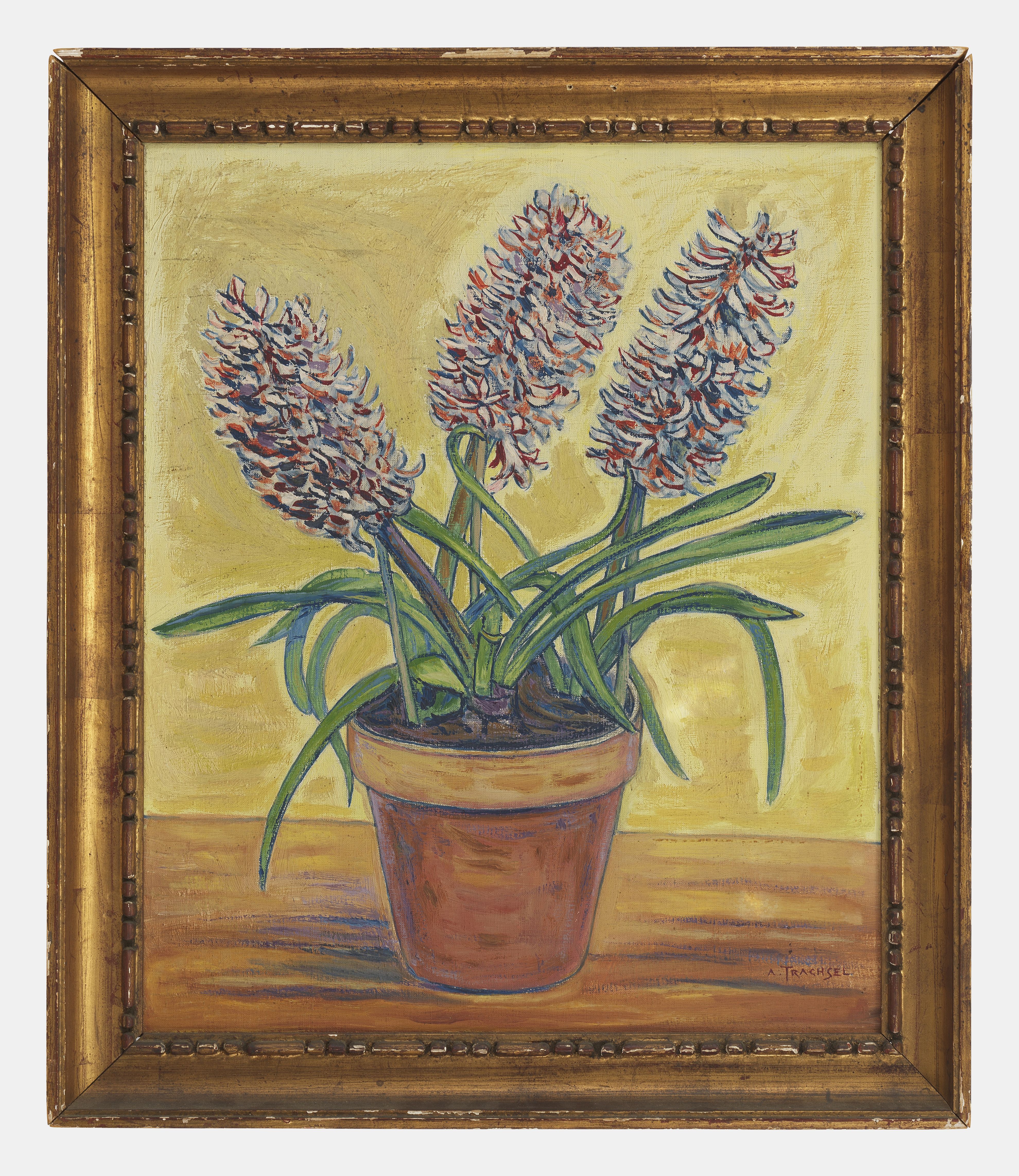 Jacinthe en pot, huile sur toile, signée, 55x46 cm
