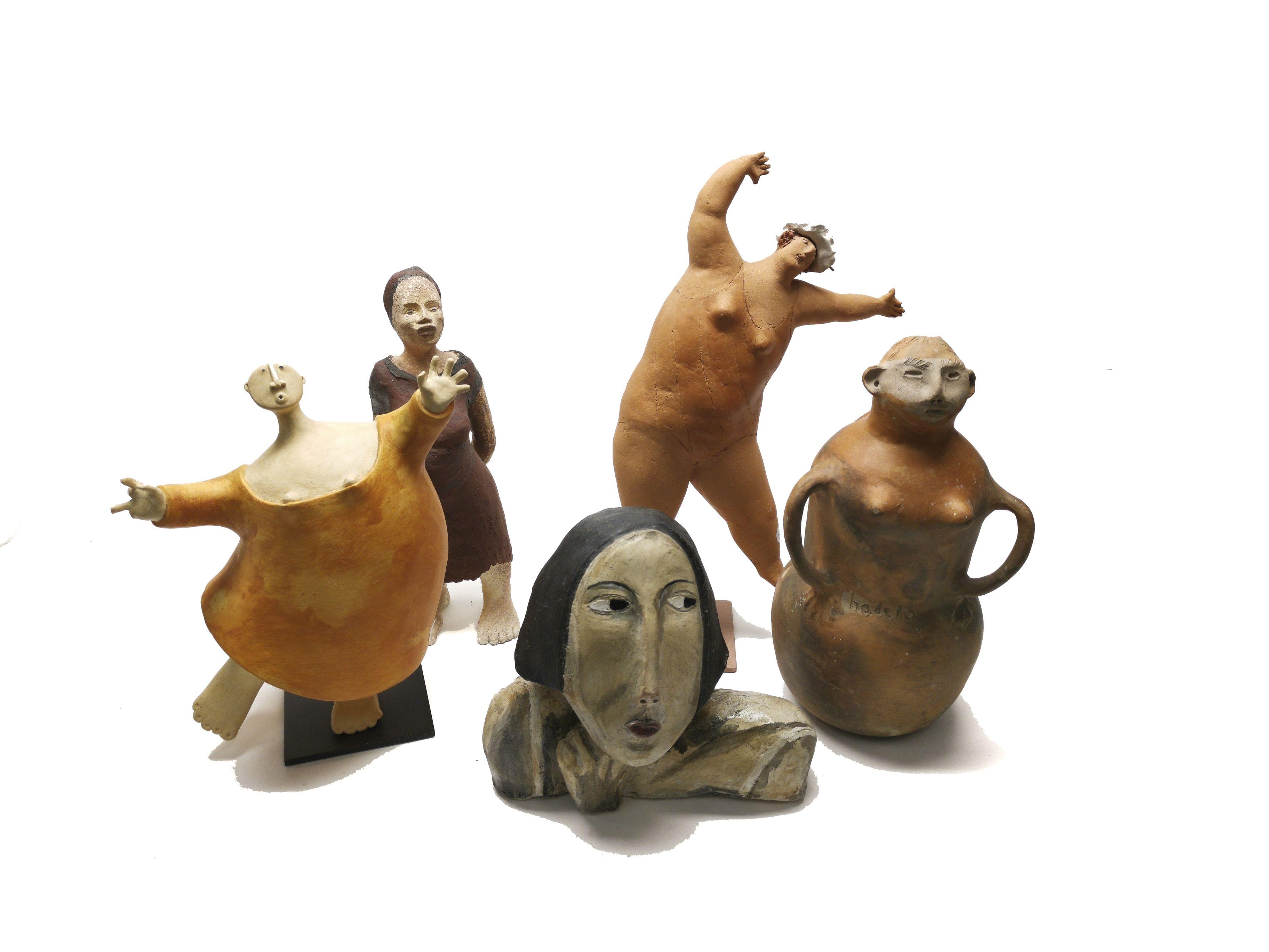 Ensemble de cinq figures féminines, terre cuite, dim. diverses. Provenance: collection Pernet-Villaverde
