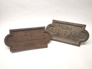 3924. Deux plaques de rue "E.H. Albrecht 1848" (Archiduc Albert) et "1...