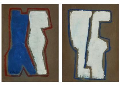 Deux compositions abstraites, paire d'huiles sur papier, signées et datées 63, 29x21,5