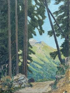 Chemin de montagne, huile sur toile, monogrammée CL, 40x30 cm