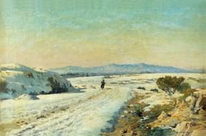 Route enneignée, huile sur toile, signée, 29x44 cm