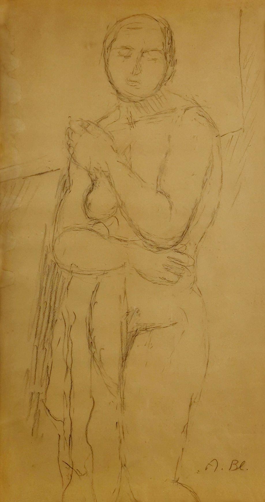 Femme assise, encre et lavis sur papier, signé, 20x26 cm