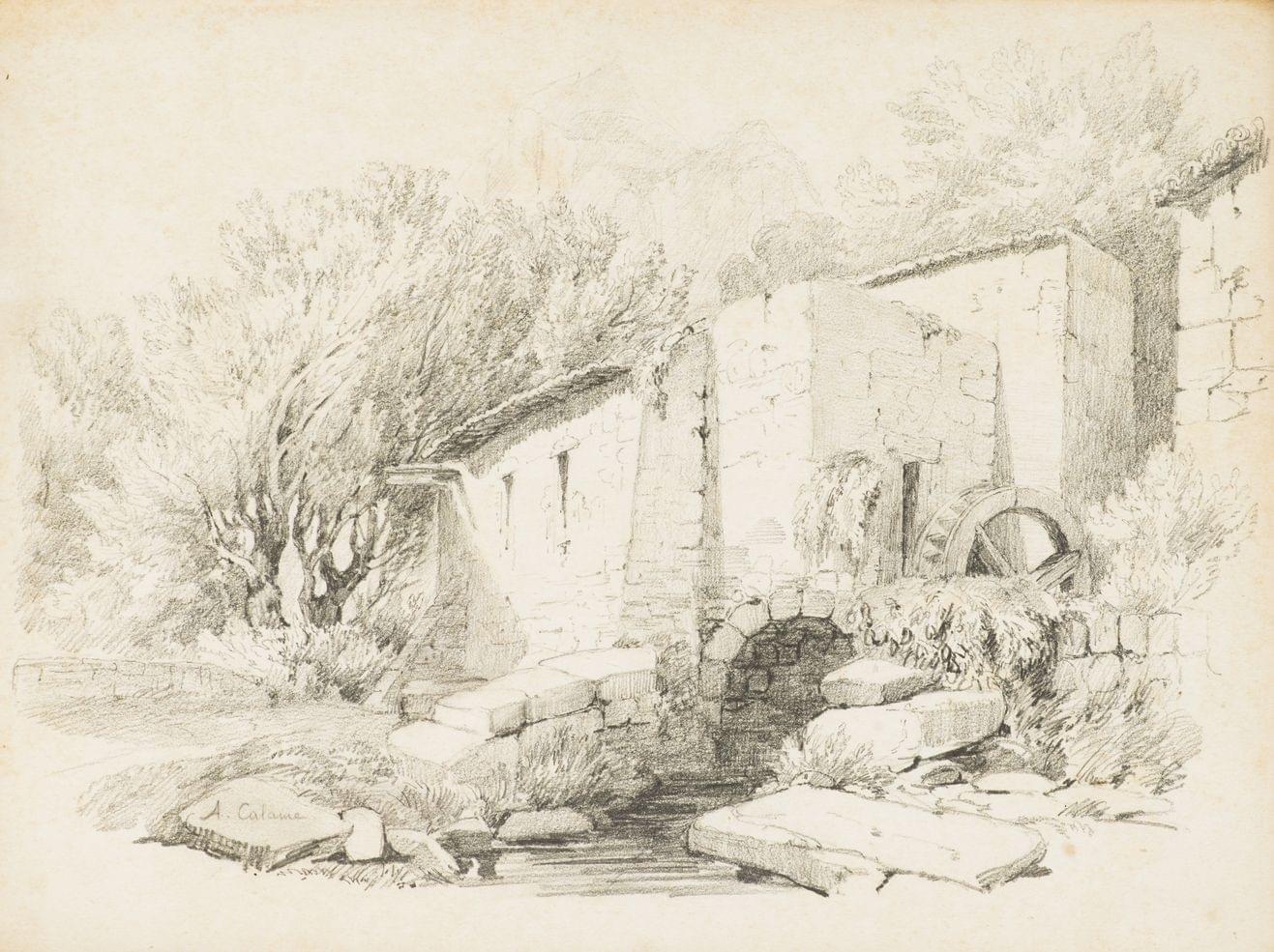 Le Bouveret, mine de plomb sur papier, signée, 19x29 cm