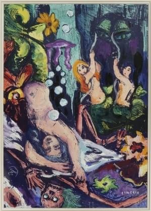 Sans titre, gouache sur papier, signée, 36x59 cm