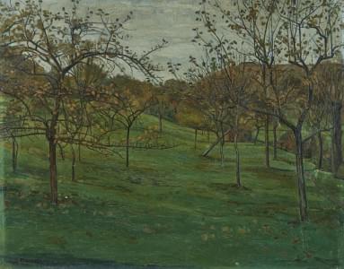 Anges autour de la Croix, technique mixte sur carton, 9,5x24,5 c...