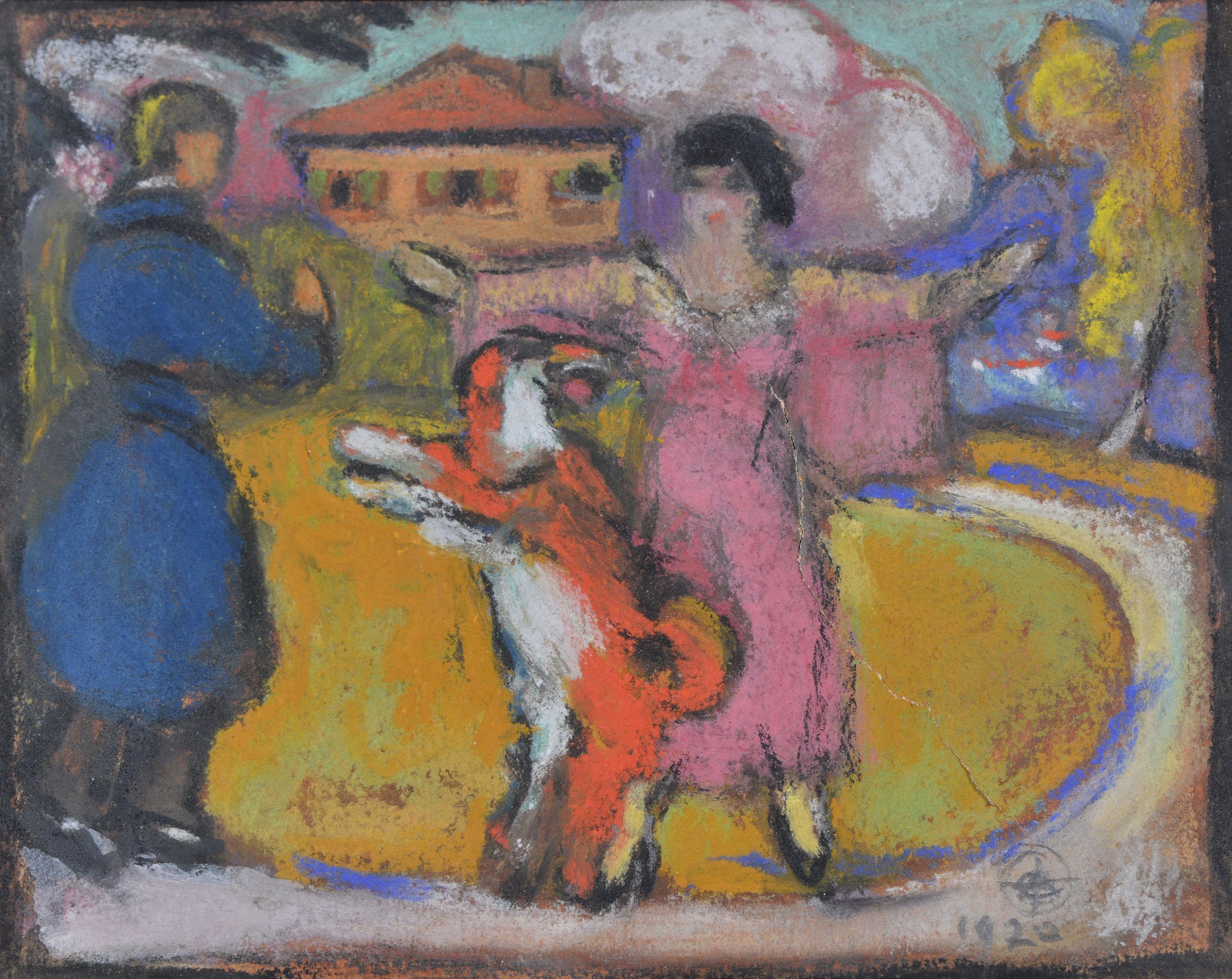 Conversation galante et chien, gouache sur papier, non signée, 6...