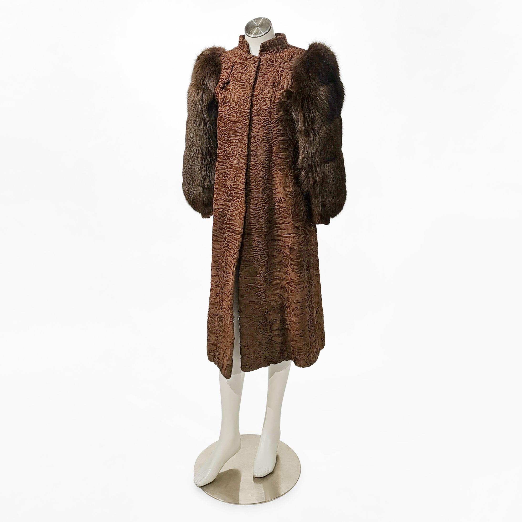Cuir d'agneau retourné jaune moutarde, col à capuche et manchons...