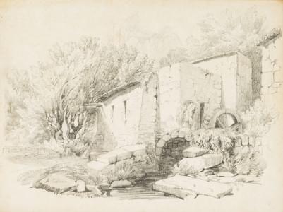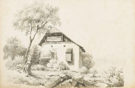 Le Bouveret, mine de plomb sur papier, signée, 19x29 cm