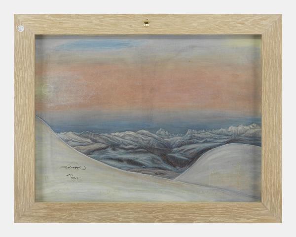 Toile double face: au recto L'Aiguille Verte, au verso le massif du Mont-Blanc, huile sur toile, cachet de la succession nº 26 au dos, 53x72 cm