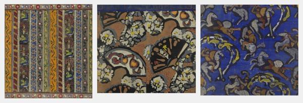 Eventail, Cachemire et Equestre, trois gouaches, signées et titr...