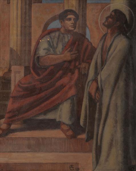 Ponce Pilate, huile sur carton, monogrammée et datée 1934, 50x40...