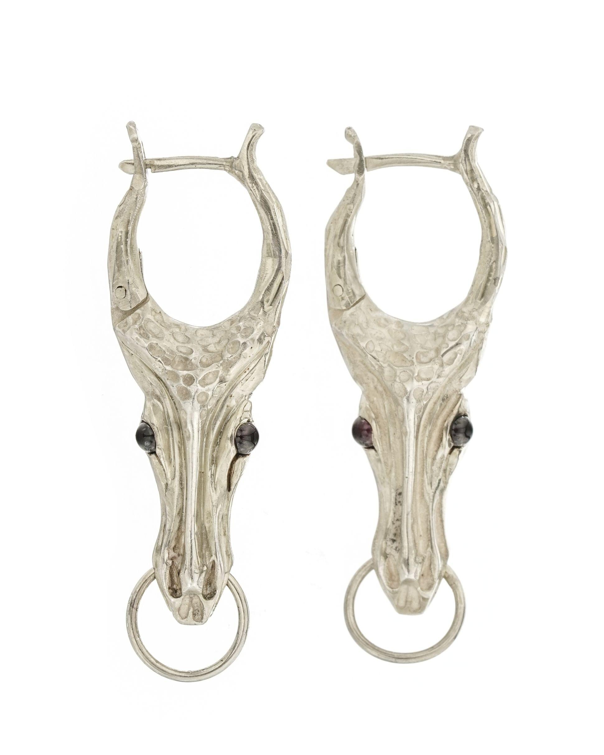 3097. Alexei Barsukov, attr., paire de pendants d'oreilles à têtes d'antilopes