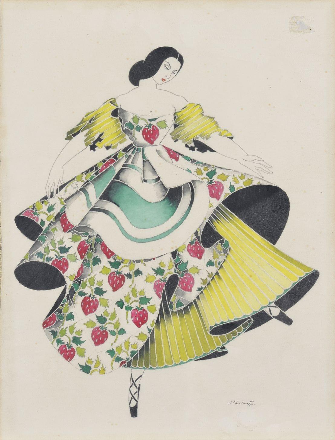 Danseuse de ballet russe, aquarelle sur papier signée, 33 x 25 cm