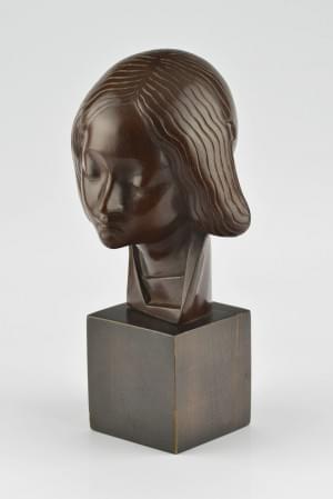Buste de femme, acajou sculpté, circa 1940, H 23 cm