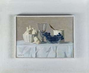 Nature morte bleu et blanc, huile sur toile, signée et datée 72,...