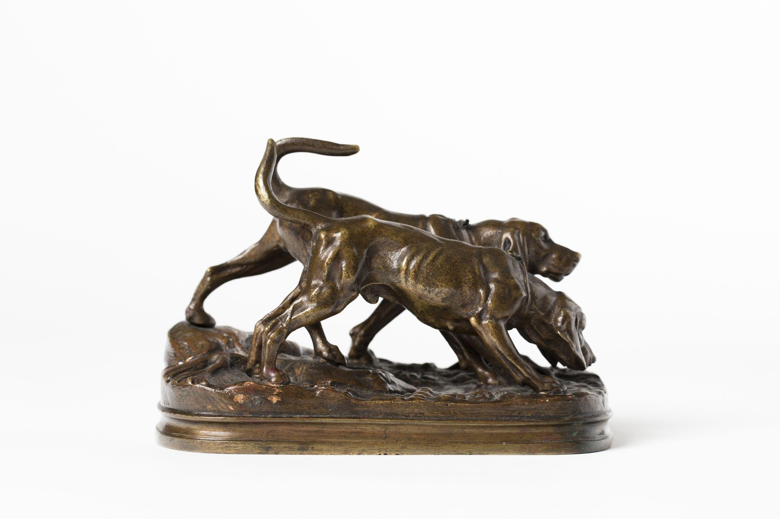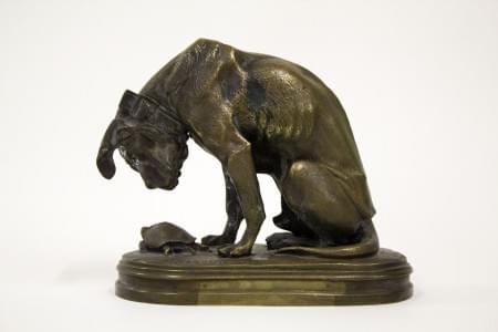 Chien à la tortue, bronze à patine brune, foncé nuancé, H 16 cm