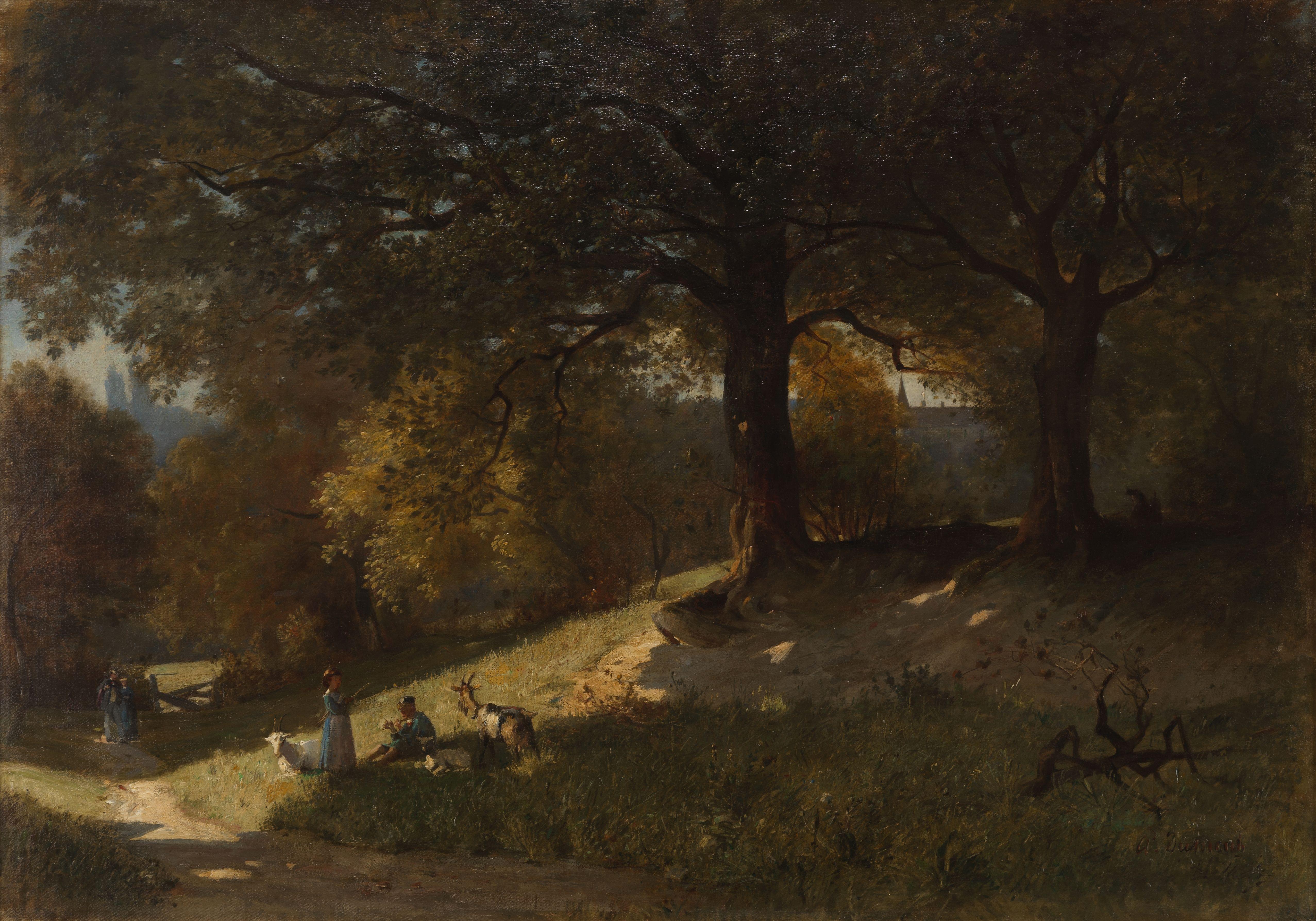 Deux jeunes femmes romaines donnant l'obole à un moine, huile su...