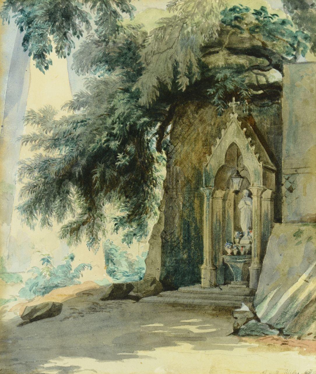 Oratoire, aquarelle sur papier signée, 24x20 cm