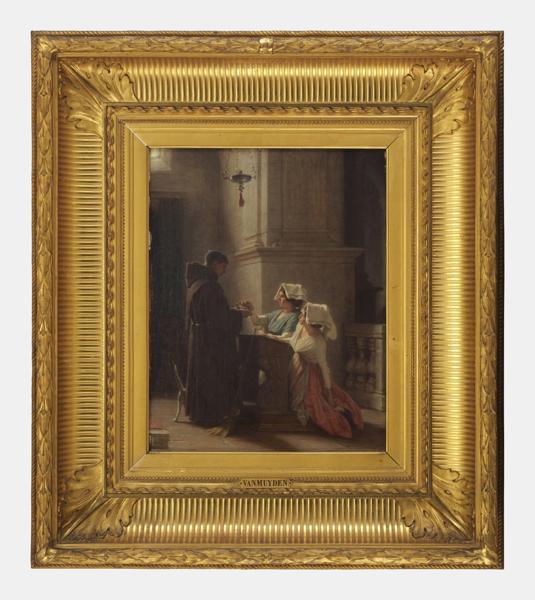 La tonsure, huile sur panneau, signée, 44x37 cm