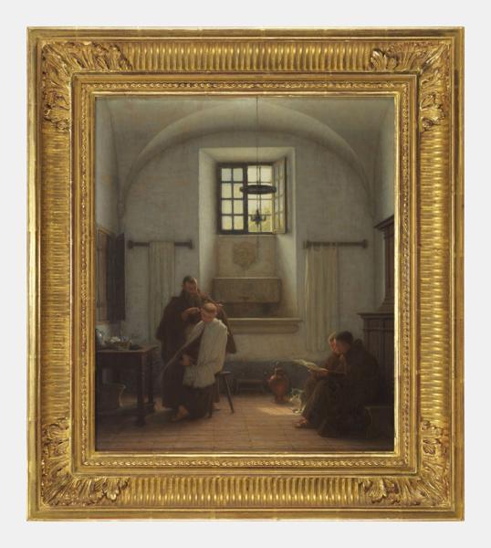 La tonsure, huile sur panneau, signée, 44x37 cm
