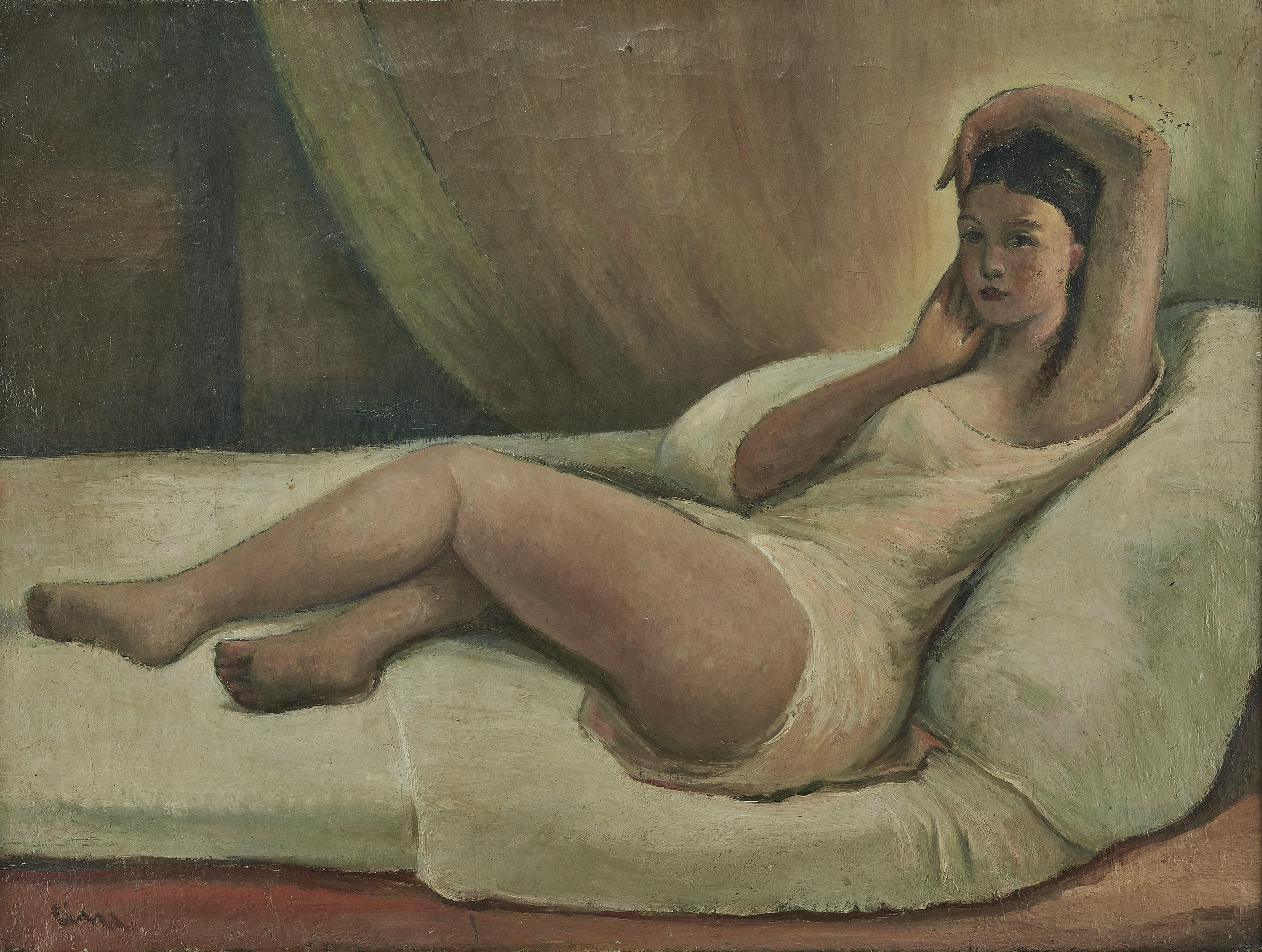 La chaste nue, huile sur toile, signée et datée 1942 au dos, 60x80 cm