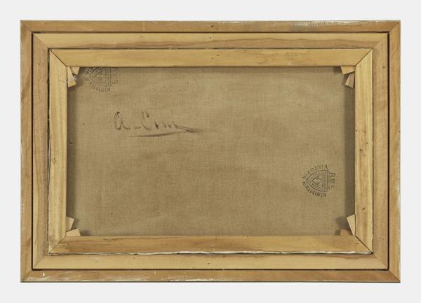 Personnages au marché, huile sur toile marouflée sur panneau, 59...