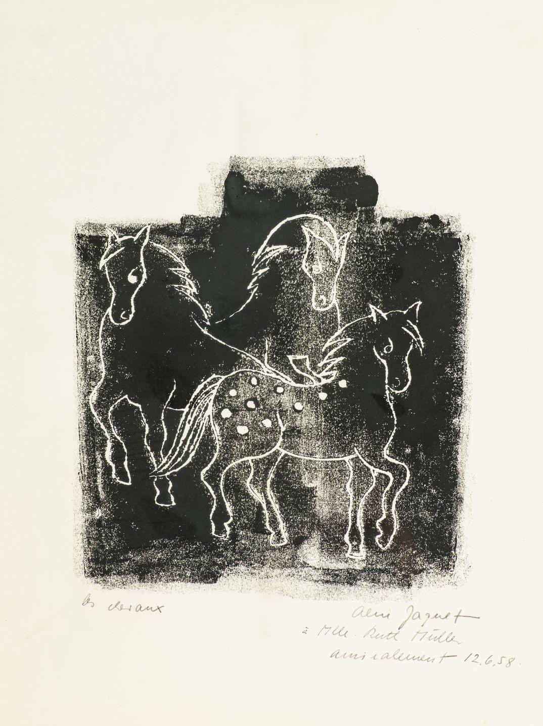 Les chevaux, bois gravé, 37x28 cm