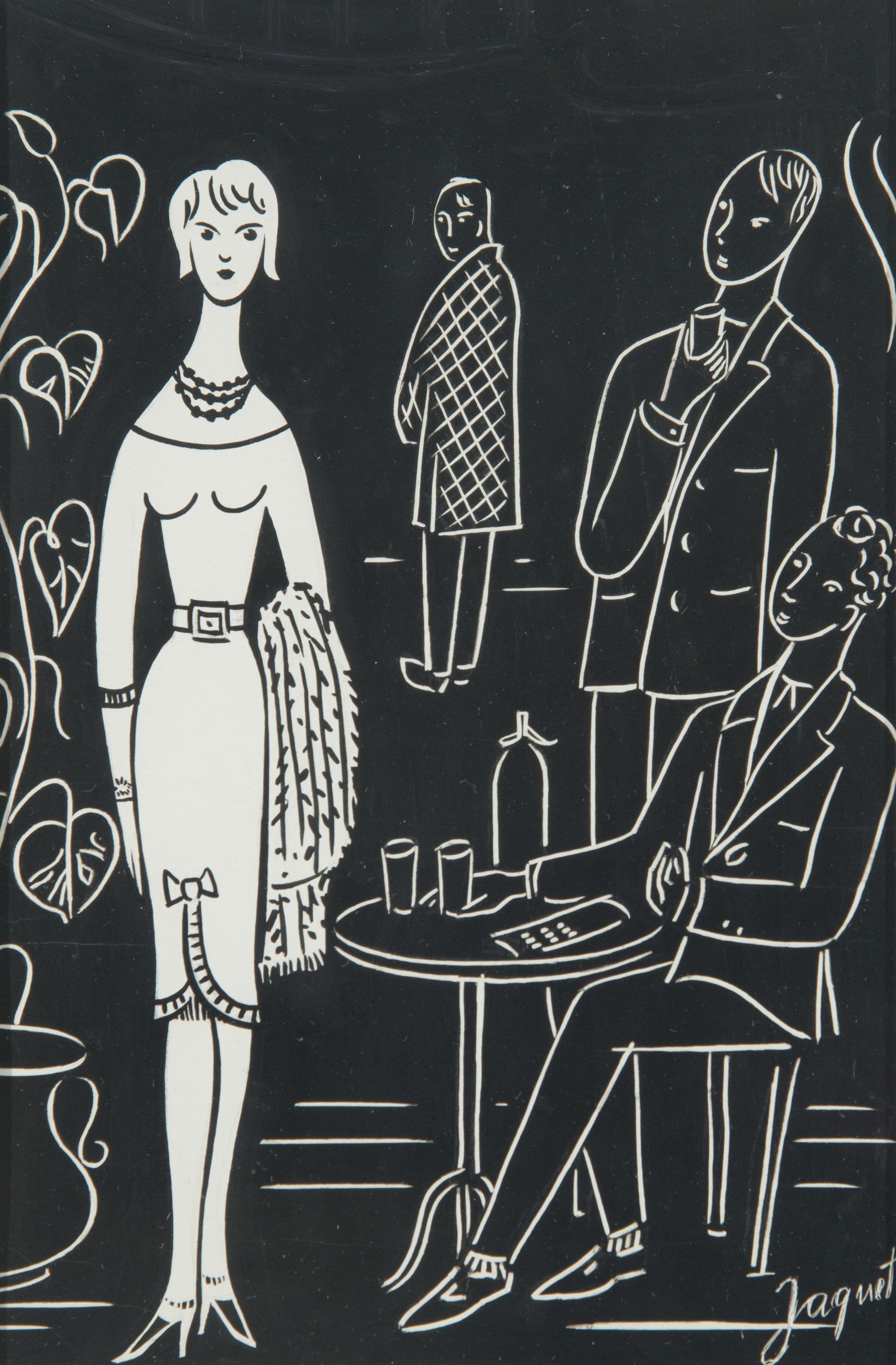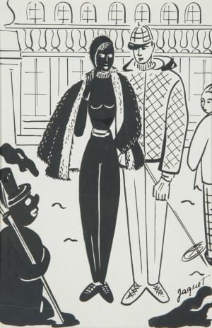 Les élégants au bonhomme de neige et J'attends mon partenaire, paire d'encres sur papier signées, 20x14cm