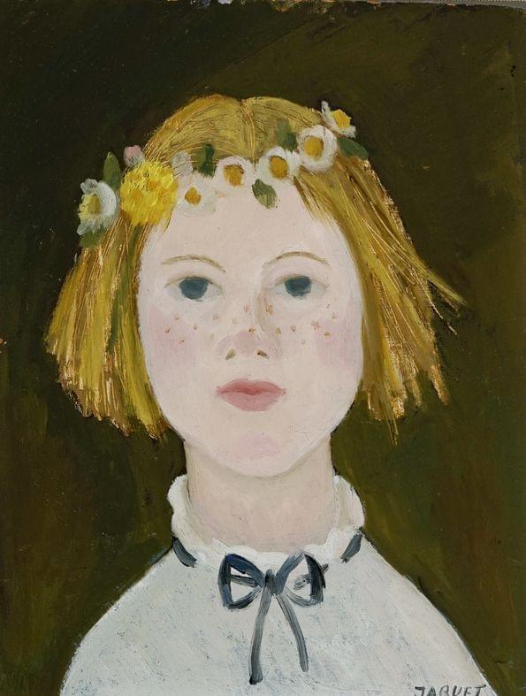 Fillette à la fleur, huile sur panneau signée et datée 48, 16x26...