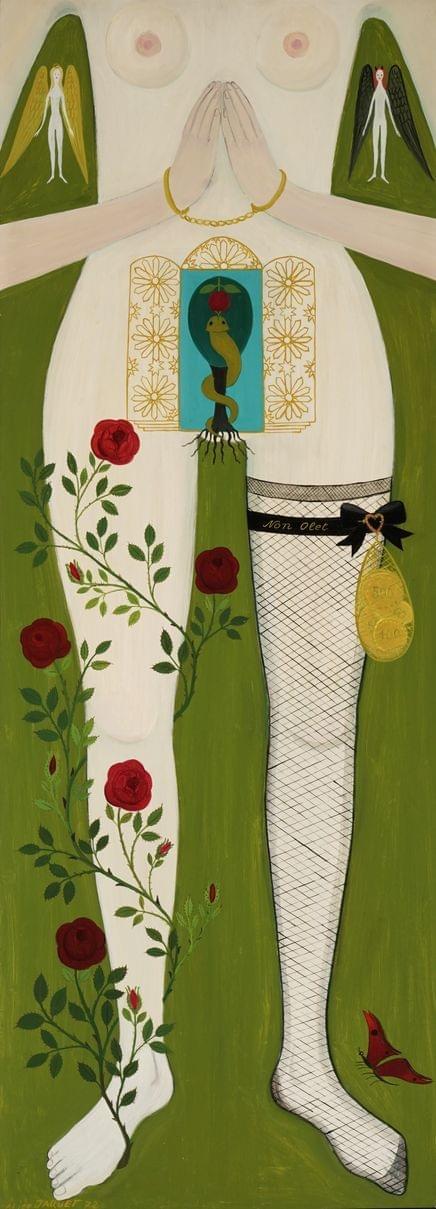 Pur et impur, huile sur pavatex, signée et datée 72, 123x45 cm