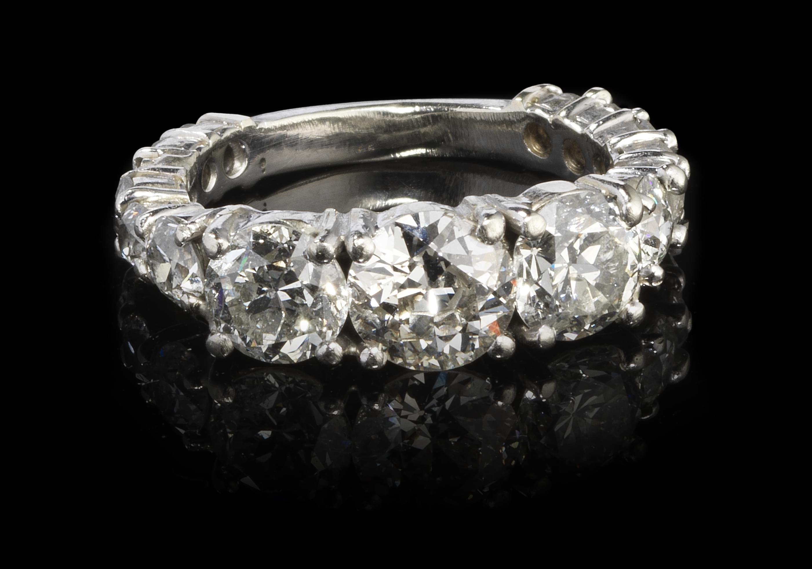 151. Alliance tour semi-complet sertie de trois diamants taille ancienne (env. 0,9, 0,7 et 0,7 ct) sur une monture sertie de diamants (env. 0,8