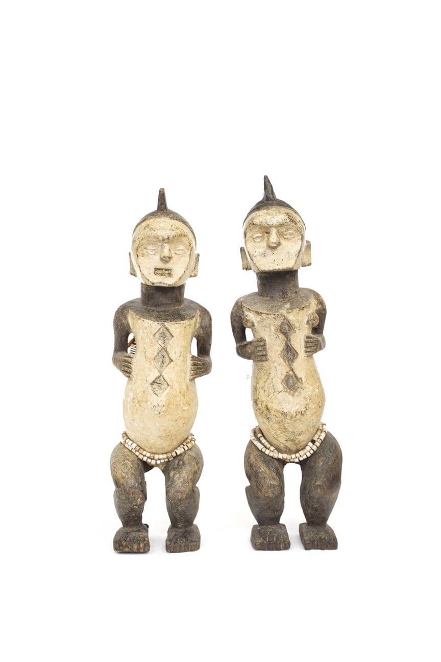 Bois sculpté et pigments blancs, H 51 et 52 cm