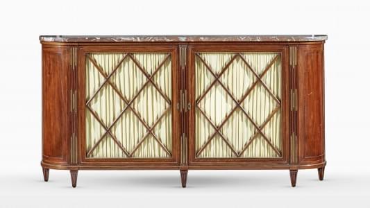 Deux vantaux à croisillons, acajou et filets de laiton, marbre r...