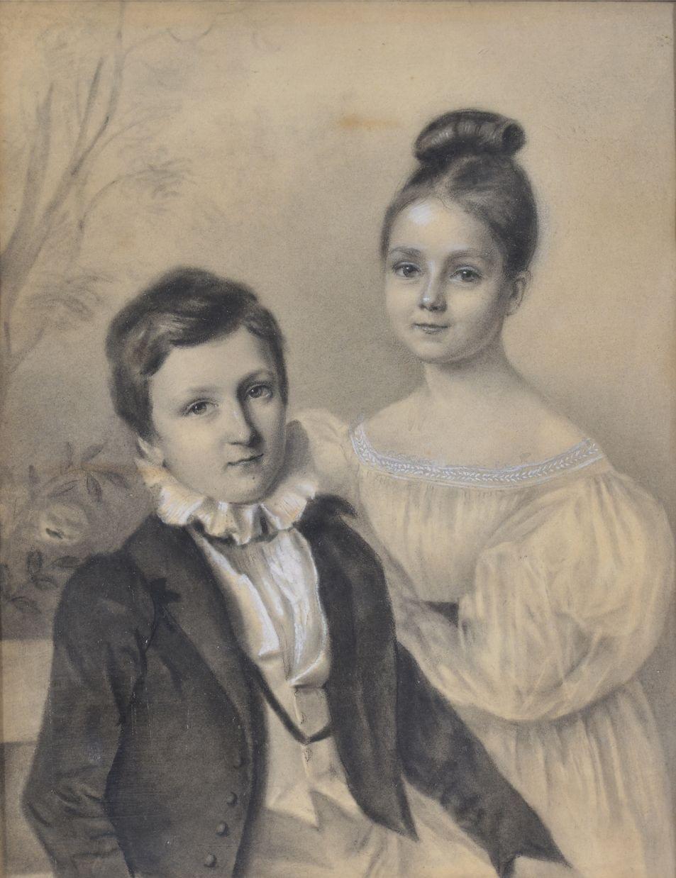 Portraits présumés de Jules et Adèle Naville, estompe sur papier, non signée, 25x30cm