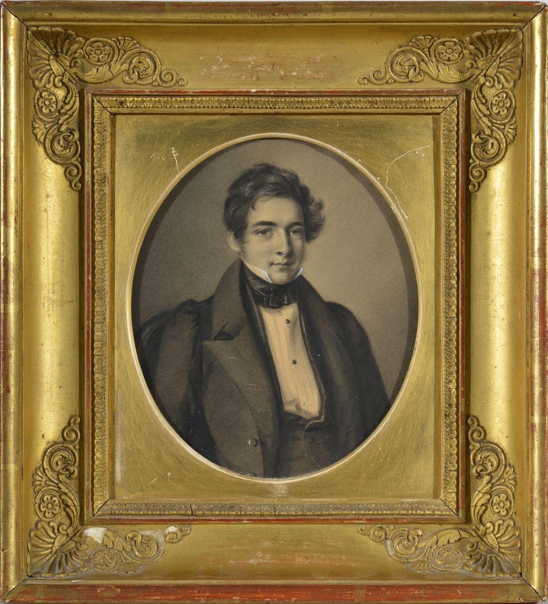 Portrait d'Auguste Girod-Martin (1812-1884), fusain et gouache sur papier, 18x15 cm