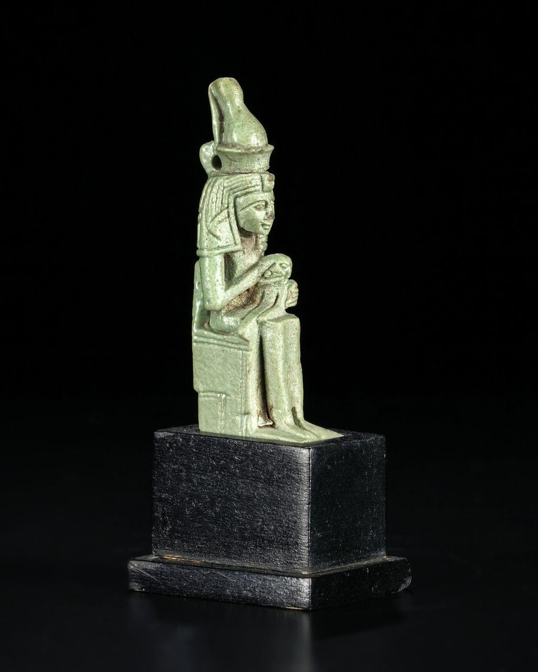 An egyptian blue faience of Isis nursing, 7e-4e BC. Provenance: Swiss private collection