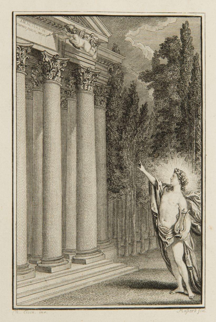 In-8°, veau blond écaille, dos à nerfs orné, triplefilet doré sur les plats, tr. jaspés. Reliure de l'époque. Premier tirage de ce très joli volume, orné d'un front., 12 vignettes de titre et 13 culs-de-lampe d'après EISEN. Petite mouillure marginale sur deux ff.