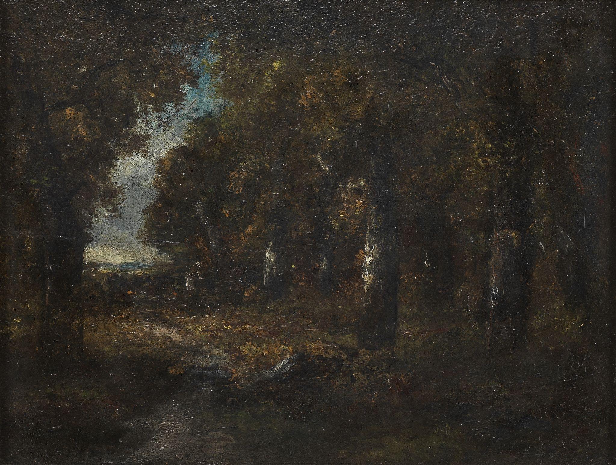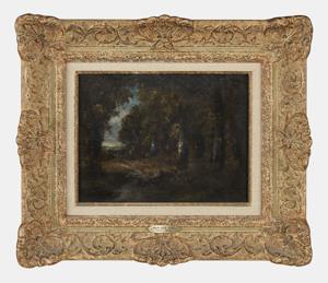 Indien dans un canoé dans un paysage, huile sur toile, 36x46 cm