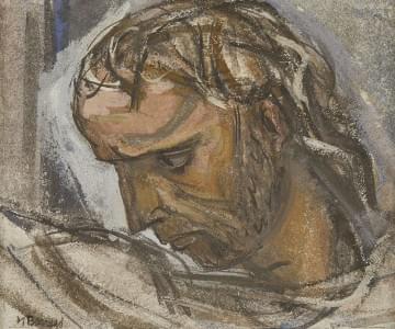 Tête d'homme, huile sur plaque de ciment, signée, 42x50 cm. Il e...