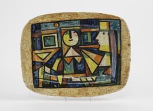 Terre chamottée à motifs abstraits, signée et située Lausanne au...