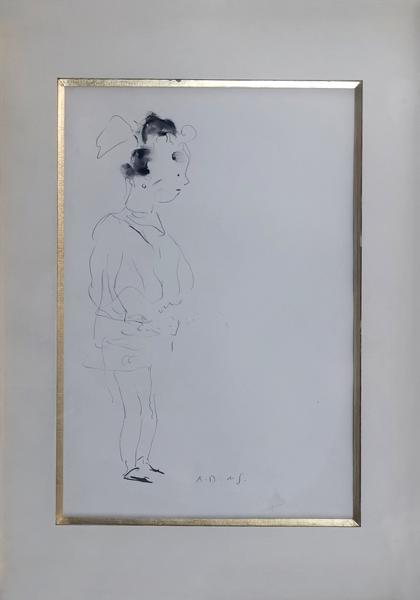 Petite fille avec ruban dans les cheveux, encre sur papier, mono...
