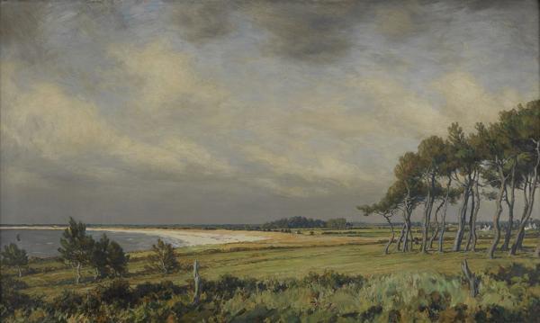 Pins au bord de la mer en Bretagne, huile sur toile, signée et d...