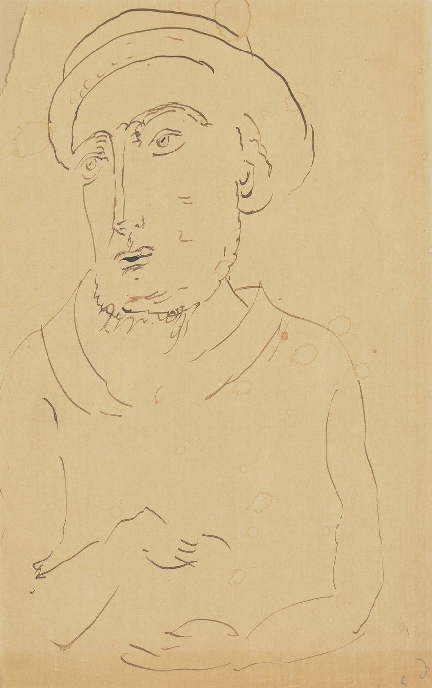 Portrait d'homme, dessin à la mine de plomb sur papier brun, sig...