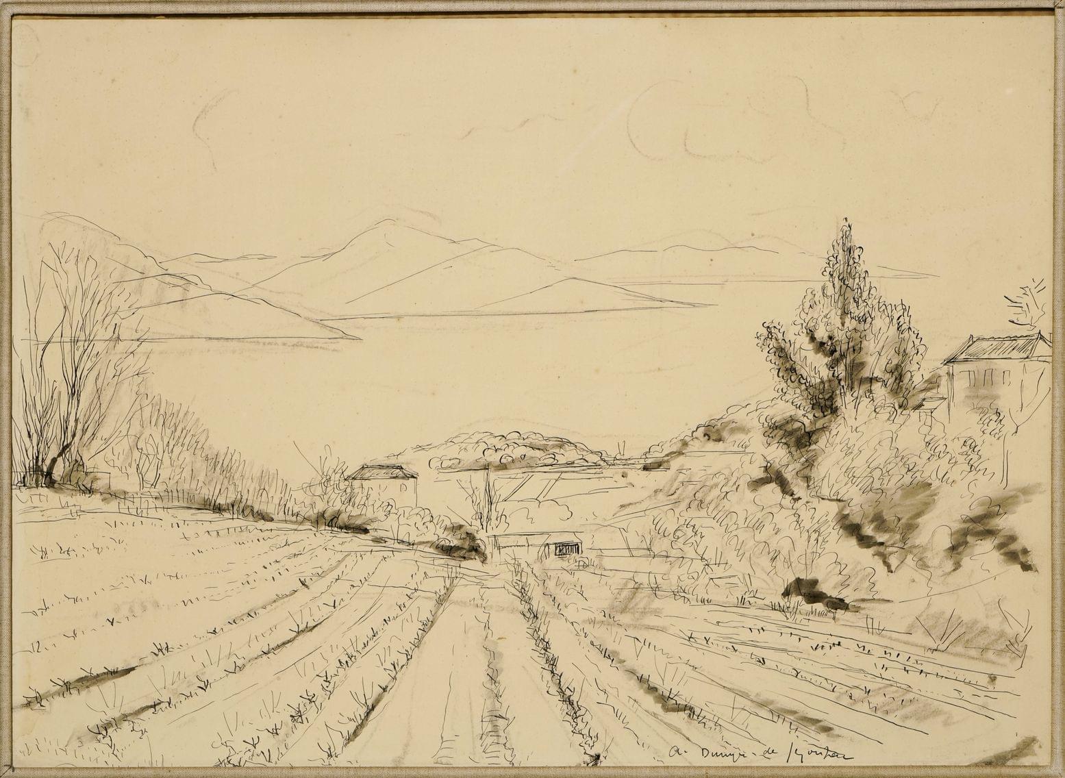 Paysage, aquarelle et encre sur papier, 10x15 cm