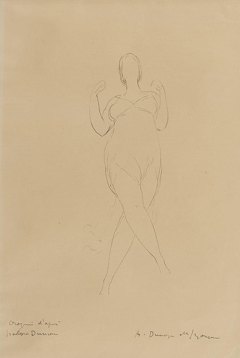 Croquis d'après Isidora Duncan, encre sur papier, signée, 32x22 cm. Provenance: collection Pernet-Villaverde