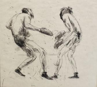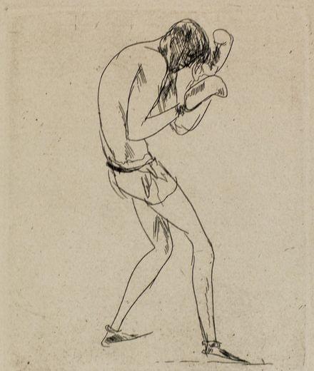 Combat de boxeurs et boxeur, deux eaux-fortes, l'une signée et numérotée 16/40, 17x19 et 24x20 cm
