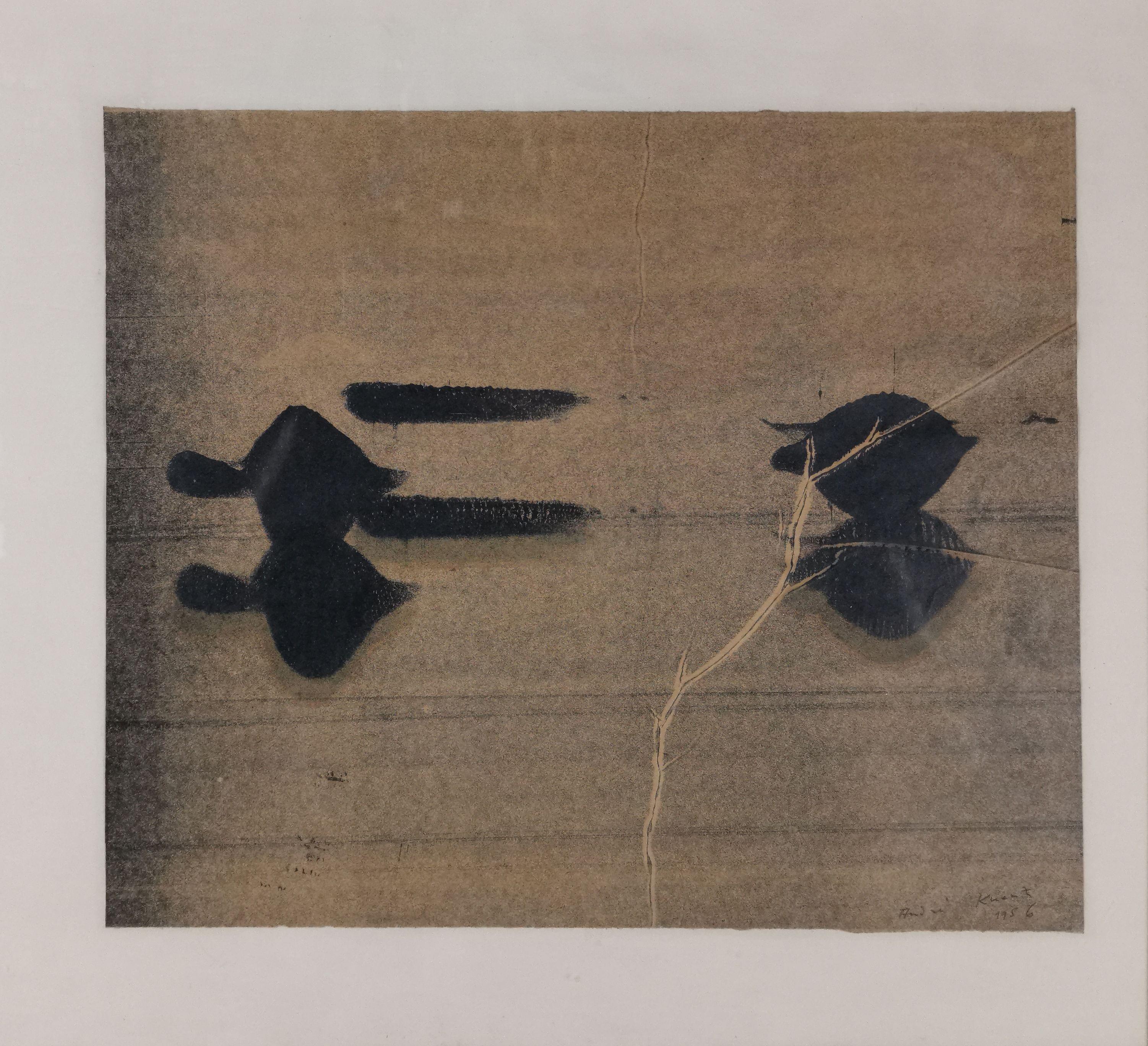 Composition, fusain et lavis sur papier, signé et daté 1956, 32x38 cm.