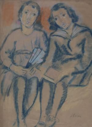 Enfants, pastel sur papier, 72x52 cm