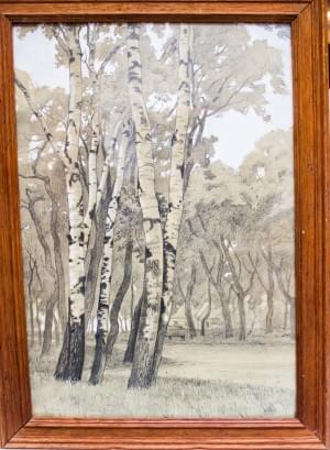 Dans le bois, Le Pouligen, crayon gras et craie blanche sur papi...